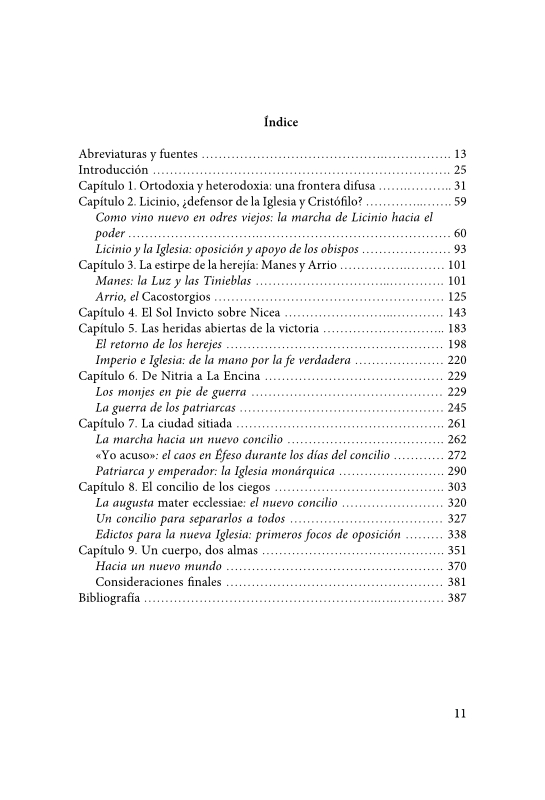 Durante la Antigüedad tardía asistimos a la creación y crecimiento de una nueva institución, la Iglesia, y al nacimiento de una nueva figura, la del obispo. Lejos del cliché historiográfico que presentaba el cristianismo como el fin de la civilización romana clásica, las fuentes del período muestran su adaptación a los nuevos marcos ideológicos. La institución episcopal acabó siendo dominada por los ordines senatorial y ecuestre. Esa confluencia con el legado grecorromano alumbró las disputas cristológicas, en torno a la naturaleza de Cristo, donde se enfrentaron las dos sensibilidades existentes en un cristianismo que no había abandonado su fase «profética», que estaba transitando por el período «escriturario» y comenzaba el tiempo «exegético». El cristianismo de raíz popular, el de los monjes y algunos obispos, no veía con buenos ojos la intelectualización a la que estaba siendo sometido el Evangelio. Otros, sin embargo, creyeron necesario dotar de una estructura de pensamiento a la Iglesia, que se había convertido en el sustento ideológico de un Imperio cuyo poder autocrático necesitaba de una legitimación. La sucesión de concilios en el Oriente mediterráneo fue algo más que una cuestión religiosa. Dirimir si en Cristo predominaba la sustancia humana o divina era discutir sobre la naturaleza misma del poder.